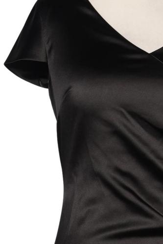 | Details | Satin, Kurzarm, V-Ausschnitt, Reißverschluss/Knöpfe hinten, Einfarbig |