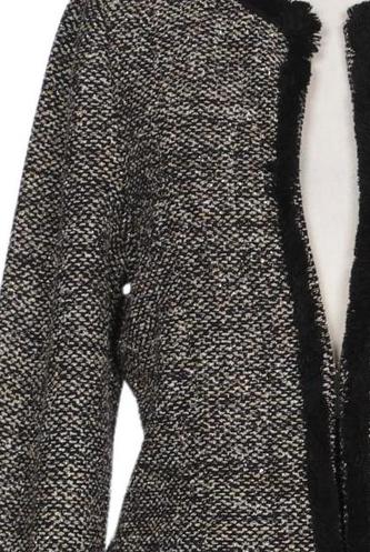 | Details | Fransen, Grobstrick, Langarm, Front Knopfleiste, Hahnentritt |