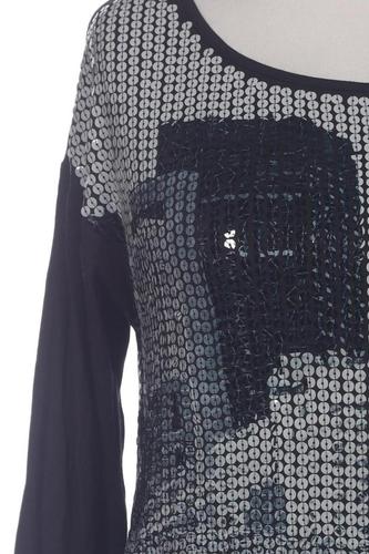 | Details | Jersey, Pailletten, metallic, Dreiviertelarm, Rundhals, verschlusslos, Motivprint |