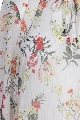 | Details | Chiffon, Dreiviertelarm, Rundhals, verschlusslos, Floral |