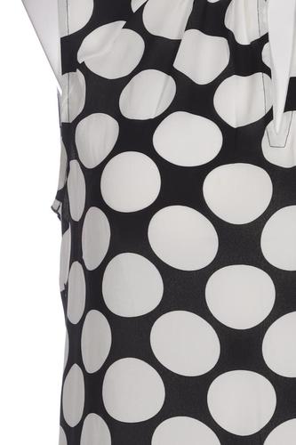 | Details | Satin, ärmellos, Rundhals, verschlusslos, Punkte |