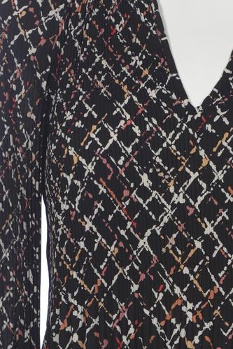 | Details | Jersey, Langarm, V-Ausschnitt, verschlusslos, Motivprint |