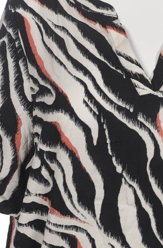 | Details | Kurzarm, V-Ausschnitt, verschlusslos, Gummizug/Tunnelzug, Zebra |
