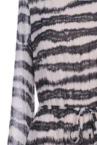 | Details | Cutouts, Chiffon, Plissee, Dreiviertelarm, Rundhals, Reißverschluss/Knöpfe hinten, Streifen |