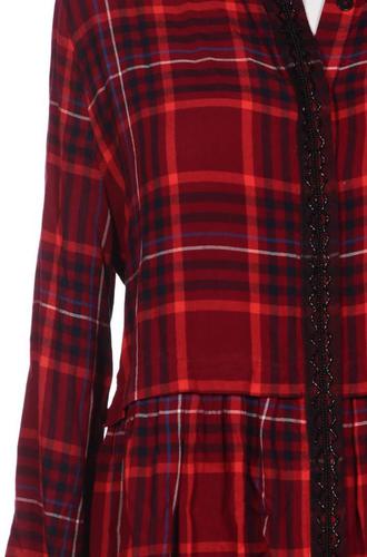 | Details | Langarm, V-Ausschnitt, Front Knopfleiste, Kariert |