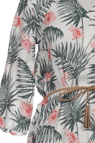 | Details | Dreiviertelarm, Bindegürtel, V-Ausschnitt, Floral |