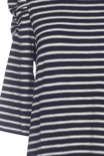 | Details | Jersey, Rüschen, Dreiviertelarm, Rundhals, Reißverschluss/Knöpfe hinten, Streifen |