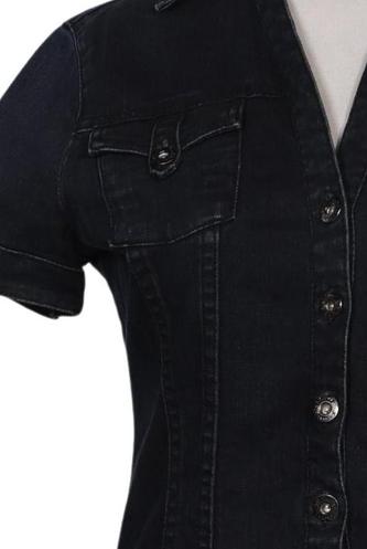 | Details | Jeans, Kurzarm, V-Ausschnitt, Front Knopfleiste, Einfarbig |
