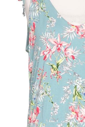 | Details | Jersey, ärmellos, V-Ausschnitt, Floral |