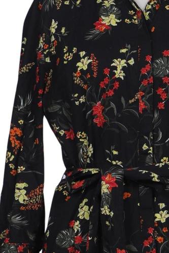 | Details | Langarm, Bindegürtel, V-Ausschnitt, Front Knopfleiste, Floral |