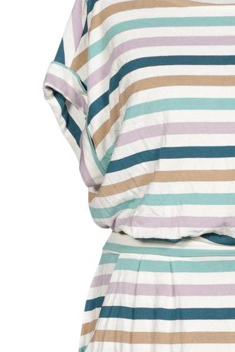 | Details | Jersey, Kurzarm, Bindegürtel, Rundhals, Gummizug/Tunnelzug, Streifen |