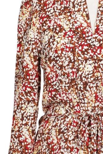 | Details | Langarm, Bindegürtel, V-Ausschnitt, Floral |