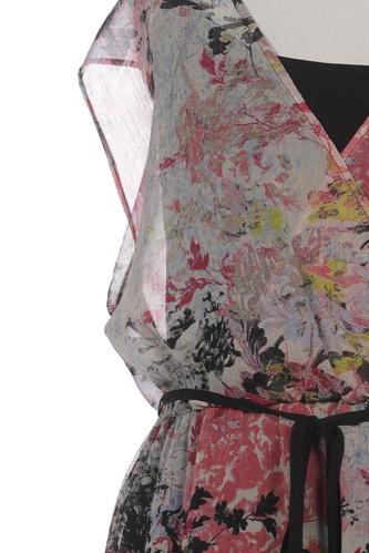 | Details | Chiffon, ärmellos, Bindegürtel, V-Ausschnitt, Floral |