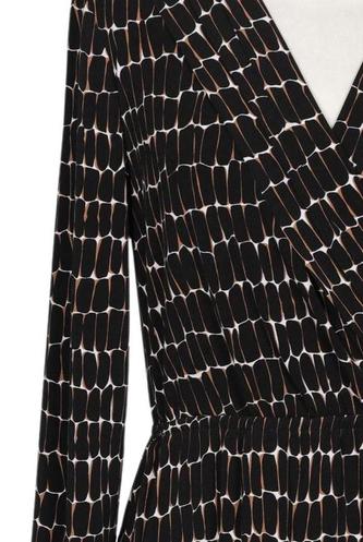 | Details | Jersey, Langarm, Wickeloptik, V-Ausschnitt, Motivprint |