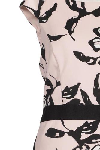 | Details | Kurzarm, Bindegürtel, Rundhals, Reißverschluss/Knöpfe hinten, Floral |