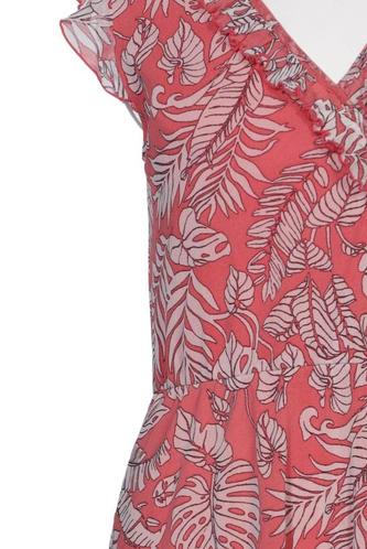 | Details | Rüschen, Kurzarm, Bindegürtel, V-Ausschnitt, Floral |