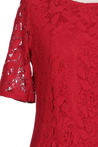 | Details | Spitze, Kurzarm, Rundhals, Reißverschluss/Knöpfe hinten, Floral |