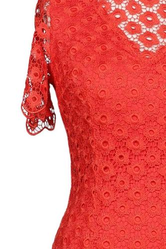 | Details | Spitze, Kurzarm, V-Ausschnitt, Reißverschluss/Knöpfe hinten |