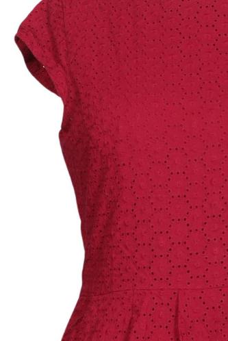 | Details | Spitze, Plissee, Lochstickerei, Kurzarm, Rundhals, Reißverschluss/Knöpfe hinten |