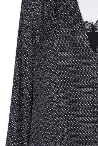 | Details | Satin, Spitze, Langarm, V-Ausschnitt, Punkte |
