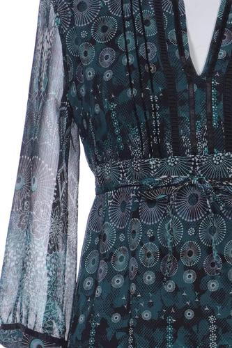 | Details | Chiffon, Dreiviertelarm, Bindegürtel, V-Ausschnitt, Floral |