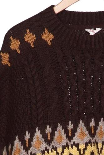| Details | Grobstrick, ärmellos, V-Ausschnitt, Ethno |