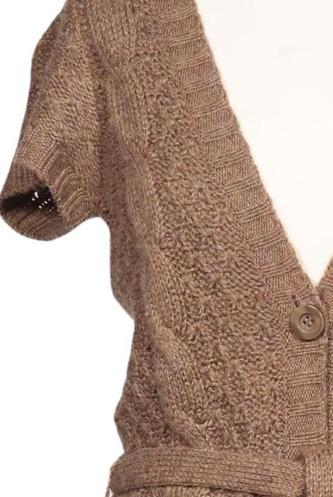 | Details | Grobstrick, Kurzarm, Bindegürtel, Front Knopfleiste, Einfarbig |