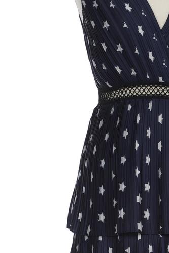 | Details | Rüschen, Plissee, ärmellos, Bindegürtel, V-Ausschnitt, Punkte |
