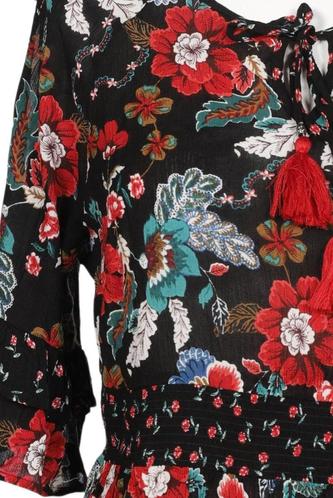 | Details | Rüschen, Chiffon, Dreiviertelarm, Rundhals, verschlusslos, Floral |