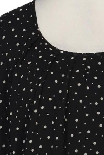 | Details | Chiffon, Dreiviertelarm, Rundhals, verschlusslos, Punkte |