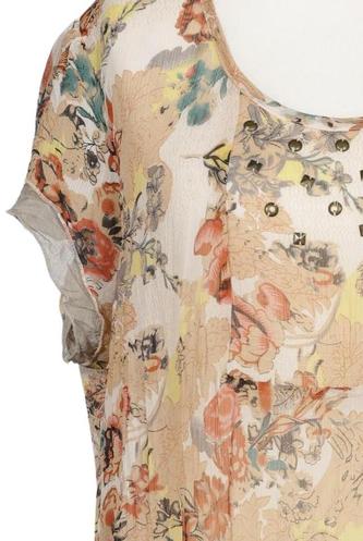 | Details | Rüschen, Chiffon, Kurzarm, Rundhals, Floral |