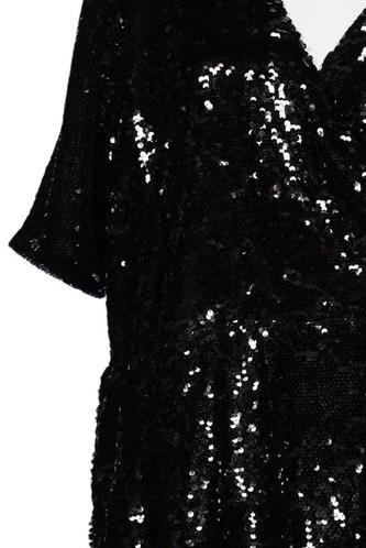 | Details | Pailletten, Kurzarm, Wickeloptik, V-Ausschnitt, Einfarbig |
