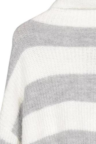 | Details | Grobstrick, Langarm, Rollkragen, Streifen |