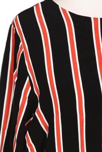 | Details | Jersey, Langarm, Bindegürtel, Rundhals, verschlusslos, Streifen |