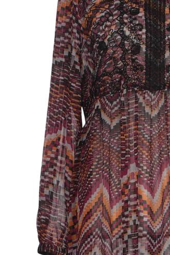 | Details | Spitze, Rüschen, Chiffon, Lochstickerei, Langarm, Rundhals, Motivprint |