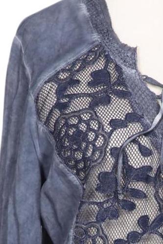 | Details | Jersey, Stickerei, Schnürung, Spitze, Dreiviertelarm, V-Ausschnitt, verschlusslos, Floral |