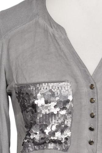 | Details | Jersey, Pailletten, Dreiviertelarm, V-Ausschnitt, verschlusslos, Einfarbig |
