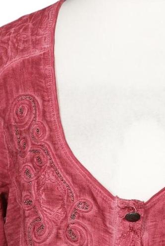 | Details | Jersey, Stickerei, Dreiviertelarm, V-Ausschnitt, Front Knopfleiste, Floral |