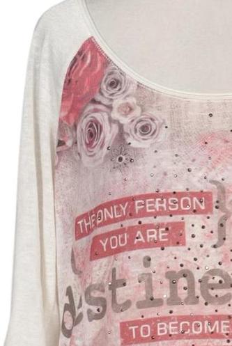 | Details | Rüschen, Dreiviertelarm, Rundhals, Motivprint |