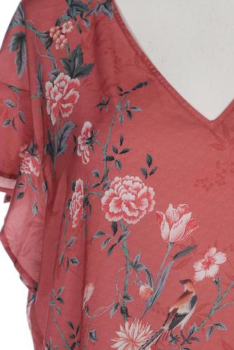 | Details | Satin, Rüschen, Kurzarm, V-Ausschnitt, verschlusslos, Floral |