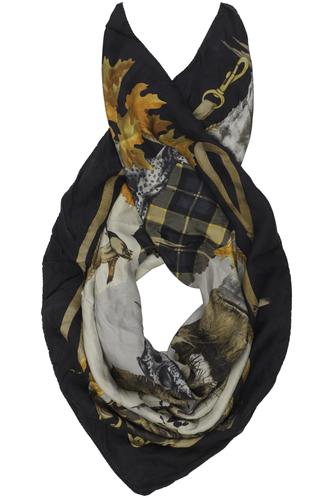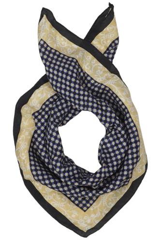 Pour un look classique, une écharpe élégante en soie imprimée, par exemple de la marque Becksöndergaard, est la plus appropriée. Il faut veiller à porter un haut uni pour que l'imprimé du foulard soit mis en valeur. Les carreaux, les rayures ou les motifs de chaînes sont très appréciés et ont un effet très noble.