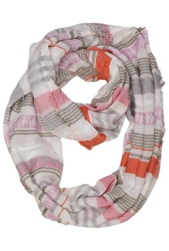 Une longue écharpe en coton très fin ou en tissu mélangé léger s'enroule facilement autour du cou et se distingue comme un point fort absolu. Les imprimés batik aux larges dégradés de couleurs, les couleurs pastel et les franges font de ce type de modèle le point fort absolu d'un look.
