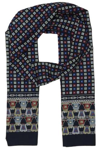Pour un look classique, une écharpe élégante en soie imprimée, par exemple de la marque Becksöndergaard, est la plus appropriée. Il faut veiller à porter un haut uni pour que l'imprimé du foulard soit mis en valeur. Les carreaux, les rayures ou les motifs de chaînes sont très appréciés et ont un effet très noble.