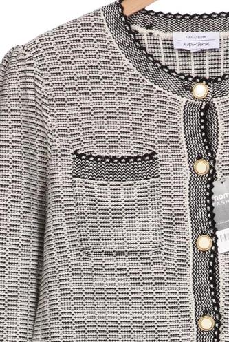 | Détails | Grosse maille, Manches longues, Col rond, Patte de boutonnage avant, Pied-de-poule |