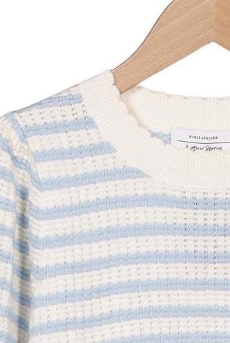| Détails | Grosse maille, Manches courtes, Col rond, Rayures |