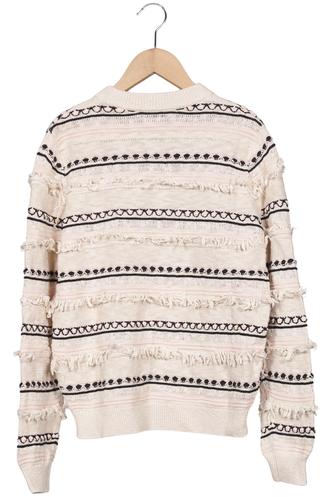 | Détails | Franges, Grosse maille, Manches longues, Col rond, Rayures |