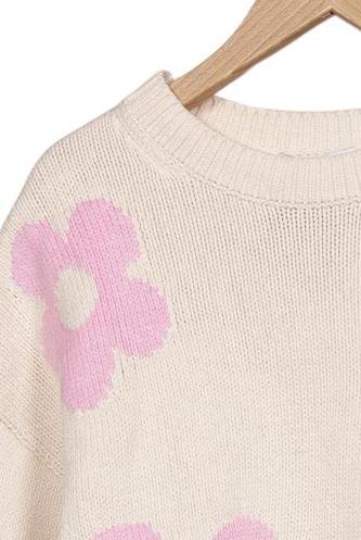 | Détails | Grosse maille, Manches longues, Col rond, Fleuri |