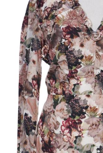 | Détails | volants, Manches longues, Encolure en V, Fermeture éclair/boutons arrière, Fleuri |