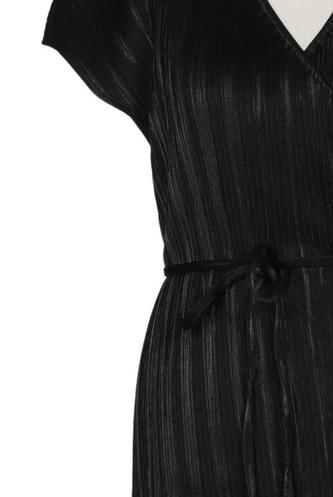 | Détails | Satin, Plissé, Manches courtes, Ceinture, Encolure en V, Uni |