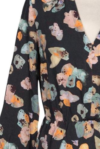 | Détails | Manches longues, Encolure en V, Patte de boutonnage avant, Fleuri |